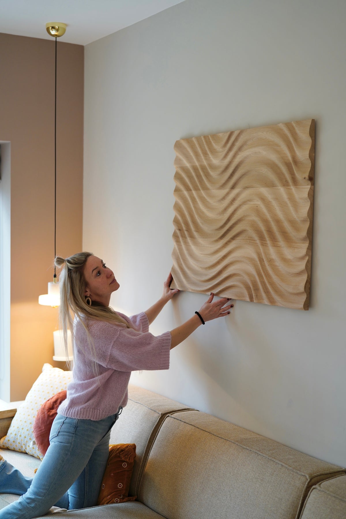 PRODUCT INFORMATION Title: "Sandbar" Beach Collection Wood Art Size in picture:(80 x 100 cm) Wood in picture: Oak Finish:Sustainable transparent protective layer