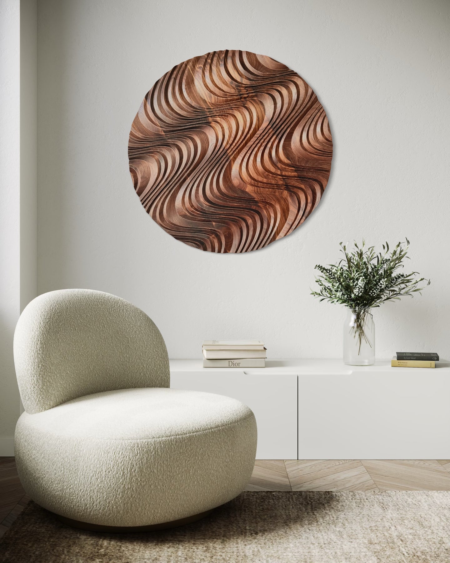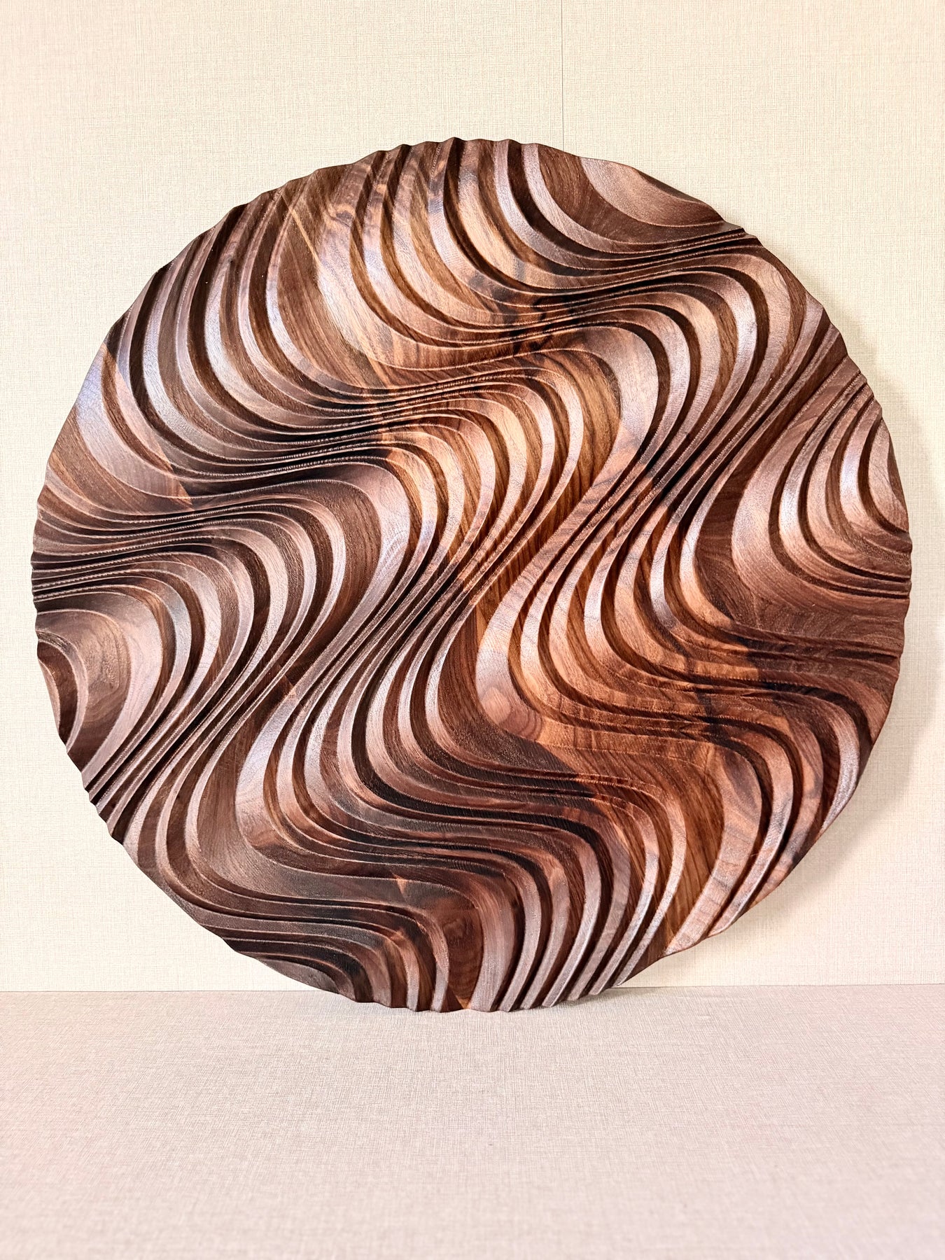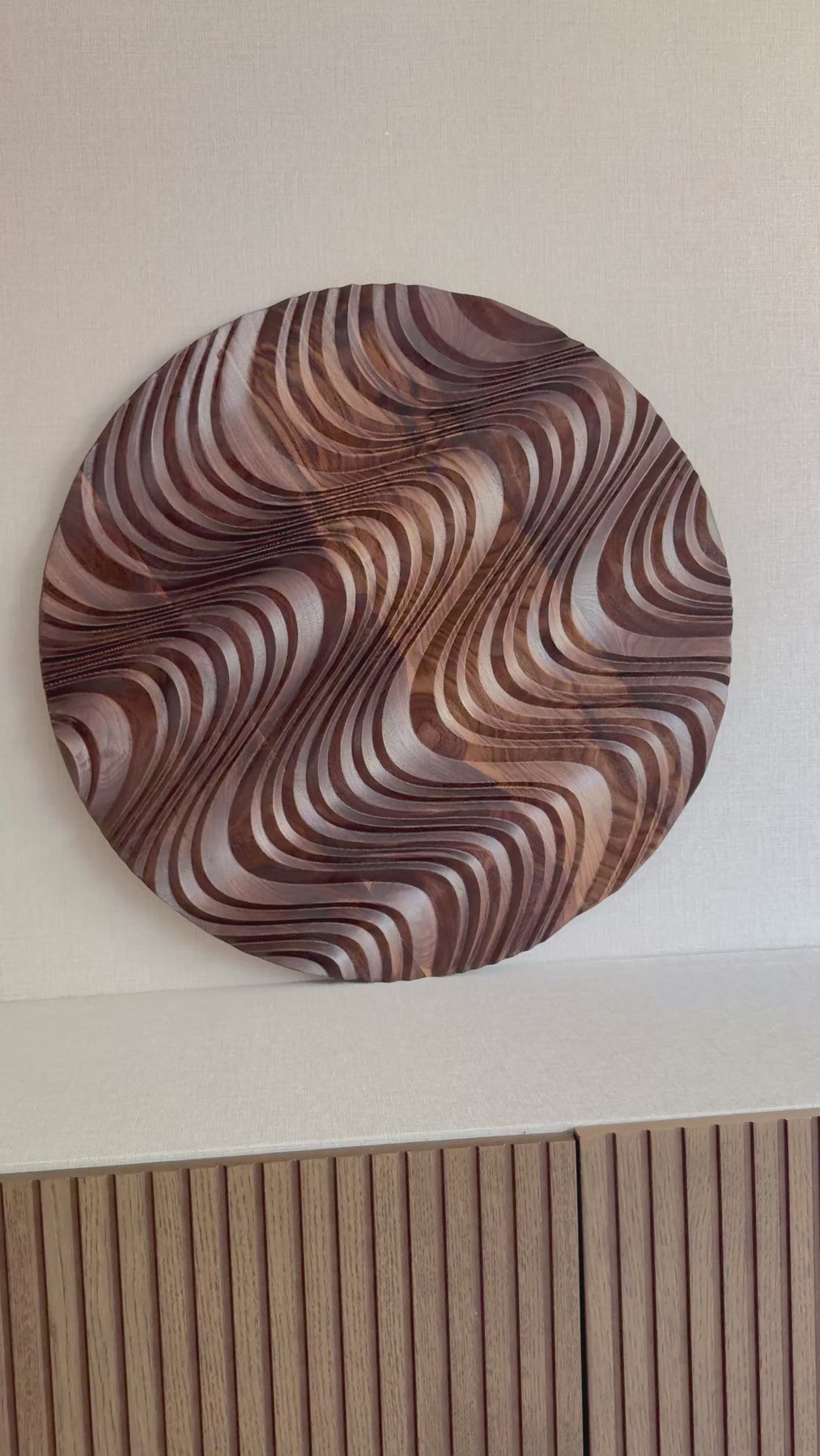 The rolling waves, crashing and unfolding in endless rhythm, create a mesmerizing dance that has always moved me deeply. Inspired by this movement, I designed a round, wavy wooden artwork that captures the essence of the sea’s flow.