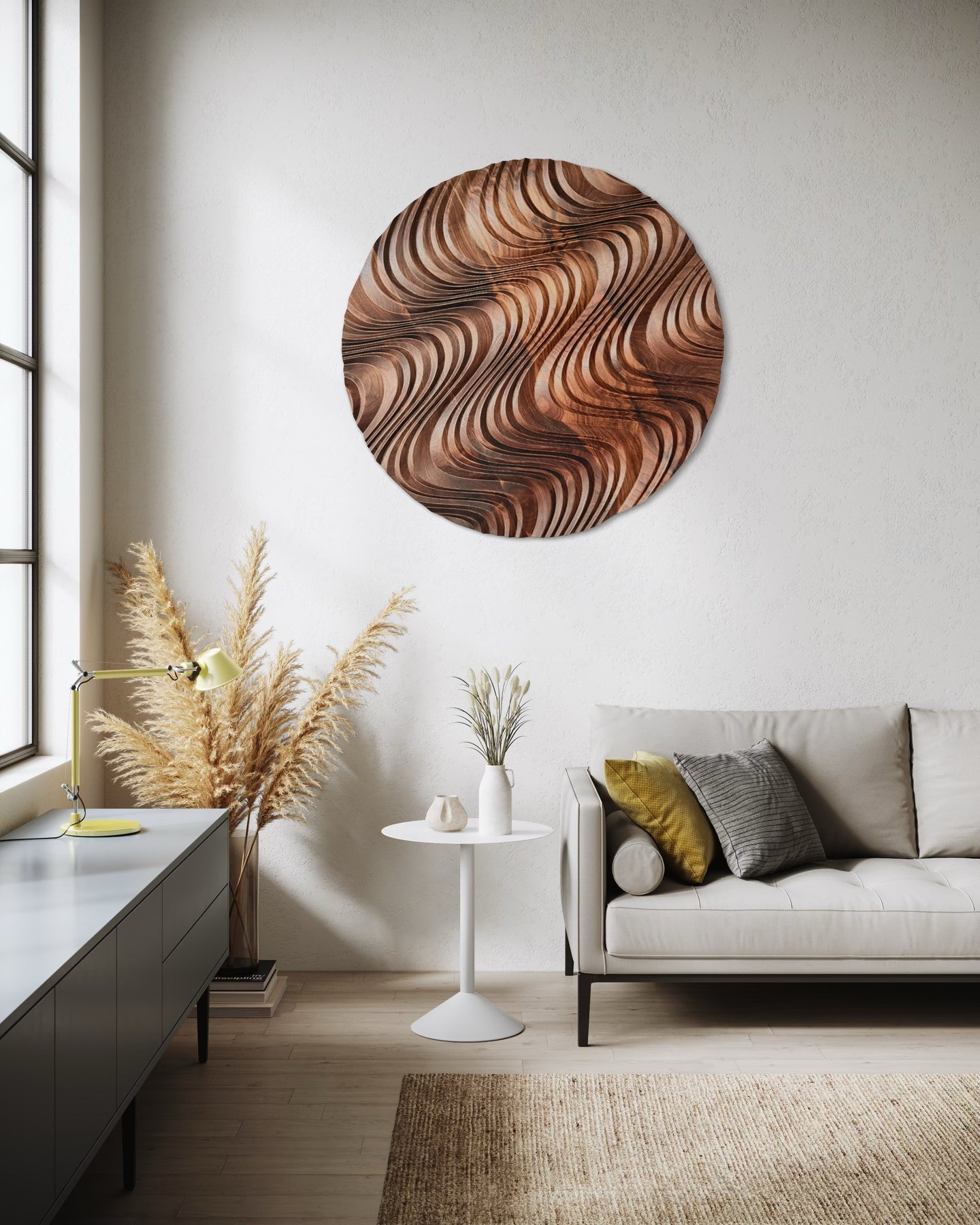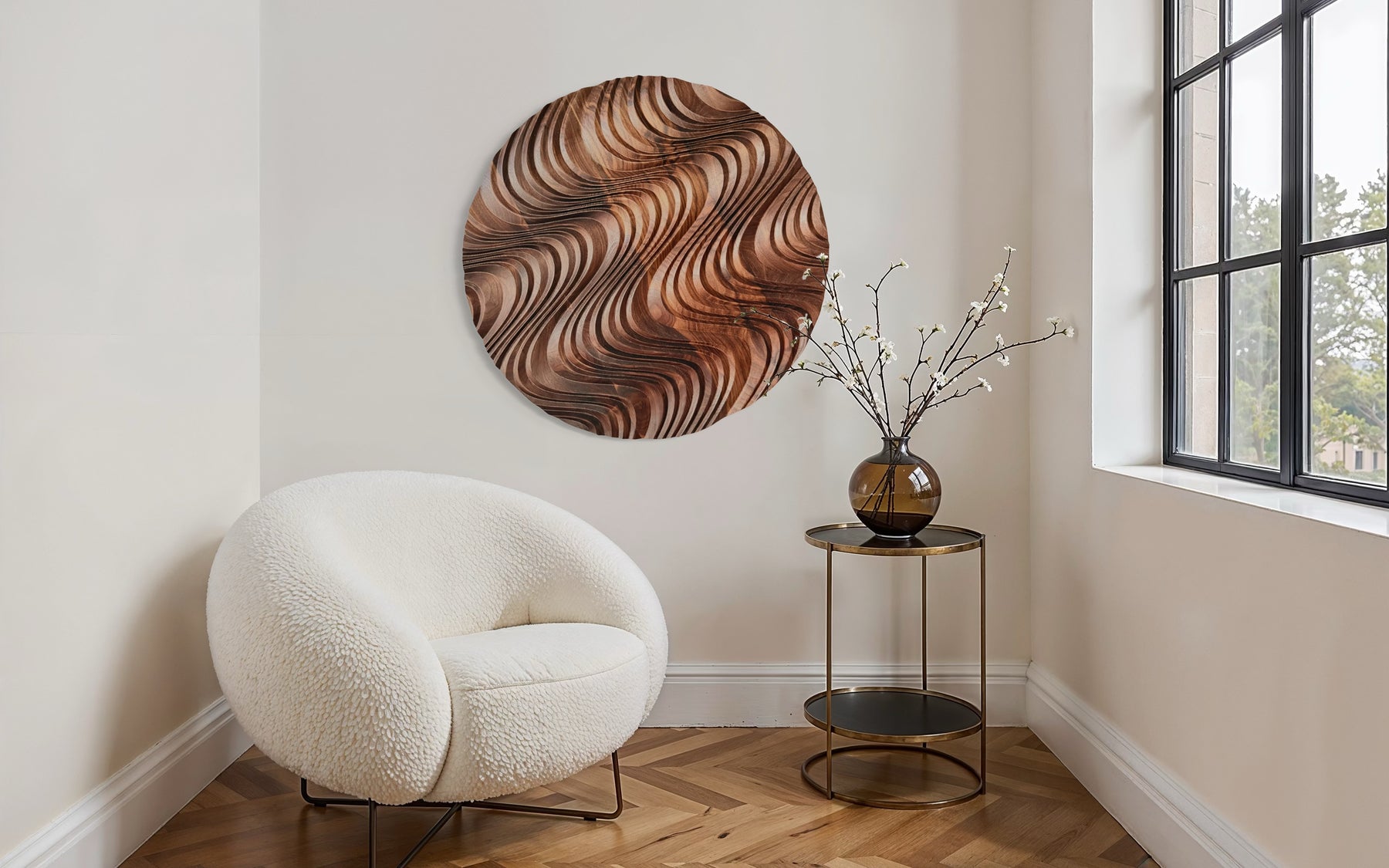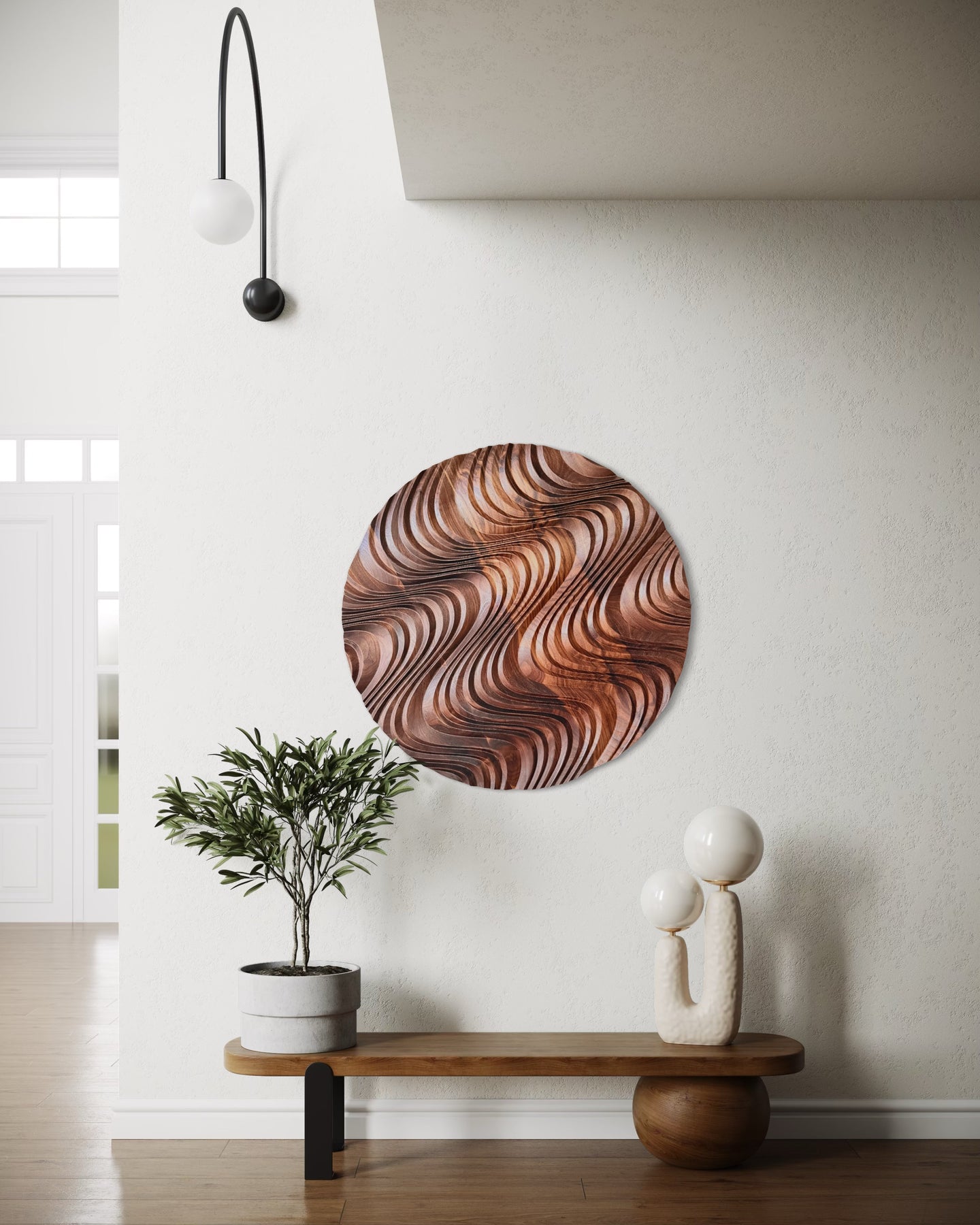 The rolling waves, crashing and unfolding in endless rhythm, create a mesmerizing dance that has always moved me deeply. Inspired by this movement, I designed a round, wavy wooden artwork that captures the essence of the sea’s flow.
