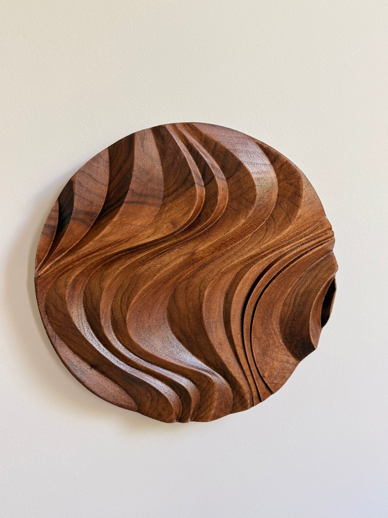 PRODUCT INFORMATION Title: "Sunset Grain " Beach Collection Wood Art Size in picture: 60x60 Wood in picture: Walnut Finish: Sustainable transparent protective layer