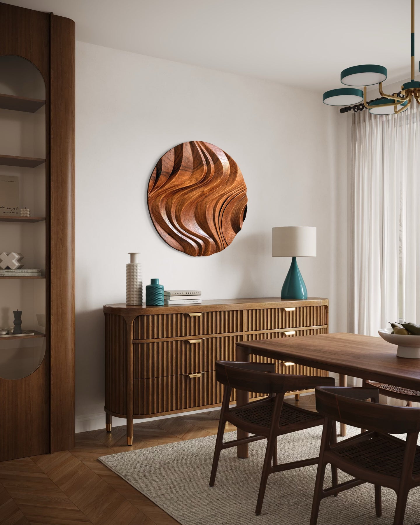 Sunset Grainbrings the warmth of golden hour into your home. With soft, flowing curves and glowing natural tones, this piece evokes the peaceful rhythm of waves and the serenity of a setting sun above the sea.